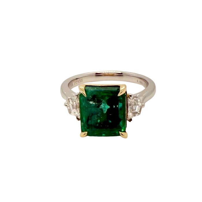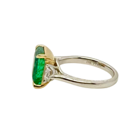 3-Stone Emerald Diamond Platinum 18kt Gold Ring