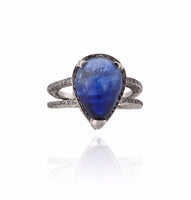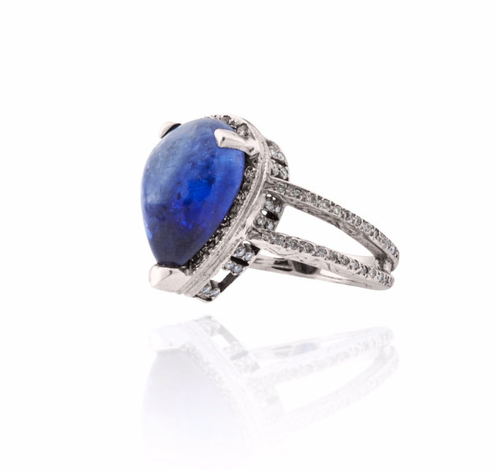 18kt White Gold 'Pear Sapphire & Diamond Ring' 11.67cttw Blue Sapphire & ~.55cttw Pave Round Diamond Brilliant